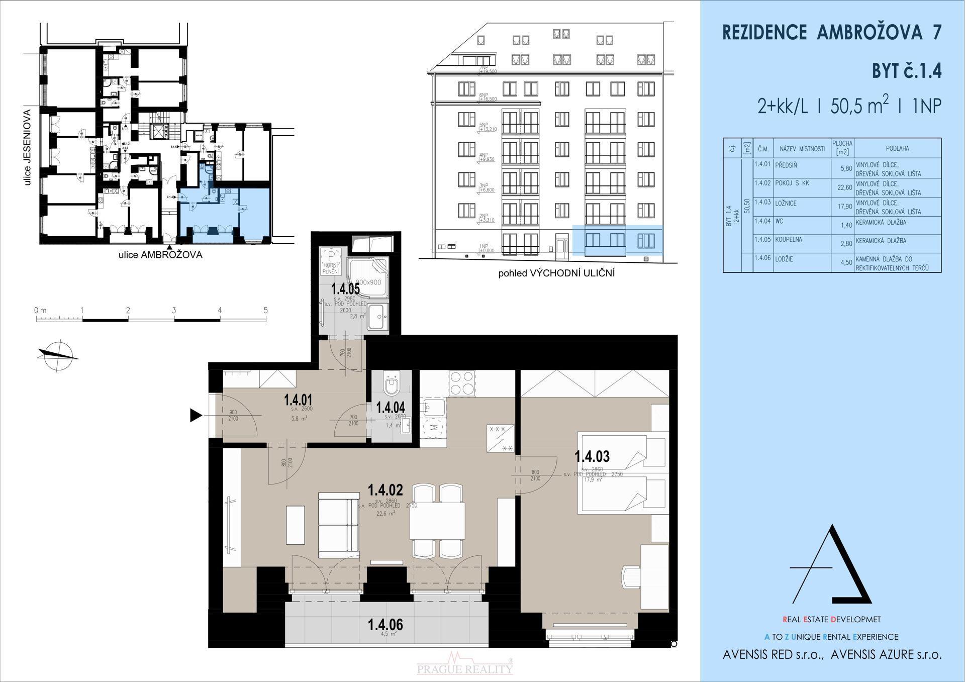 Nadstandardní, moderní byt v nádherném domě po kompletní rekonstrukci, Praha 3 - Žižkov, roh ulic Jeseniova x Ambrožova, kousek od legendárního kina Aero. Pozor - byt se nachází v klasickém přízemí, všechna okna i lodžie jsou orientované do ulice Ambrožova, byt je tmavší. Jedná se o hezky řešené 2+kk, 50m2 + lodžie 4,5m2. Byt má vstupní předsíň, koupelnu se sprchou, oddělené WC, obývací pokoj s kuchyňským koutem a vstupem na lodžii, a dále velkou ložnici. K bytu je možné si pronajmout sklepní kóji v suterénu domu za 500 Kč. Byt má nadstandardní provedení koupelny, kuchyňskou linku se spotřebiči (varná deska, trouba, digestoř, lednice, příprava pro myčku i pračku), vše velmi kvalitní a vkusné. Jinak je byt pronajímán nezařízený. Nové a bezstarostné centrální vytápění a ohřev vody (každý byt má vlastní měřič). Elektřina v bytě je převáděna na nájemce. V domě společná TV anténa. V bytě přípojka internetu. Byt je ideální pro jednotlivce či pár. Vychovaný domácí mazlíček (pes / kočka) nevadí. Jedná se o velmi příjemnou lokalitu v zeleni přímo pod parkem Židovské pece a zároveň hned u mnoha zastávek tramvají i autobusu (Biskupcova nebo Ohrada) a s veškerou občanskou vybaveností v okolí. Nájemné 18.000 + služby pro 1 osobu 1.662 / pro 2 osoby 2.667 + elektřina cca 1.200. Kauce 40.000, provize 18.000, k nastěhování od 1.4.2026.